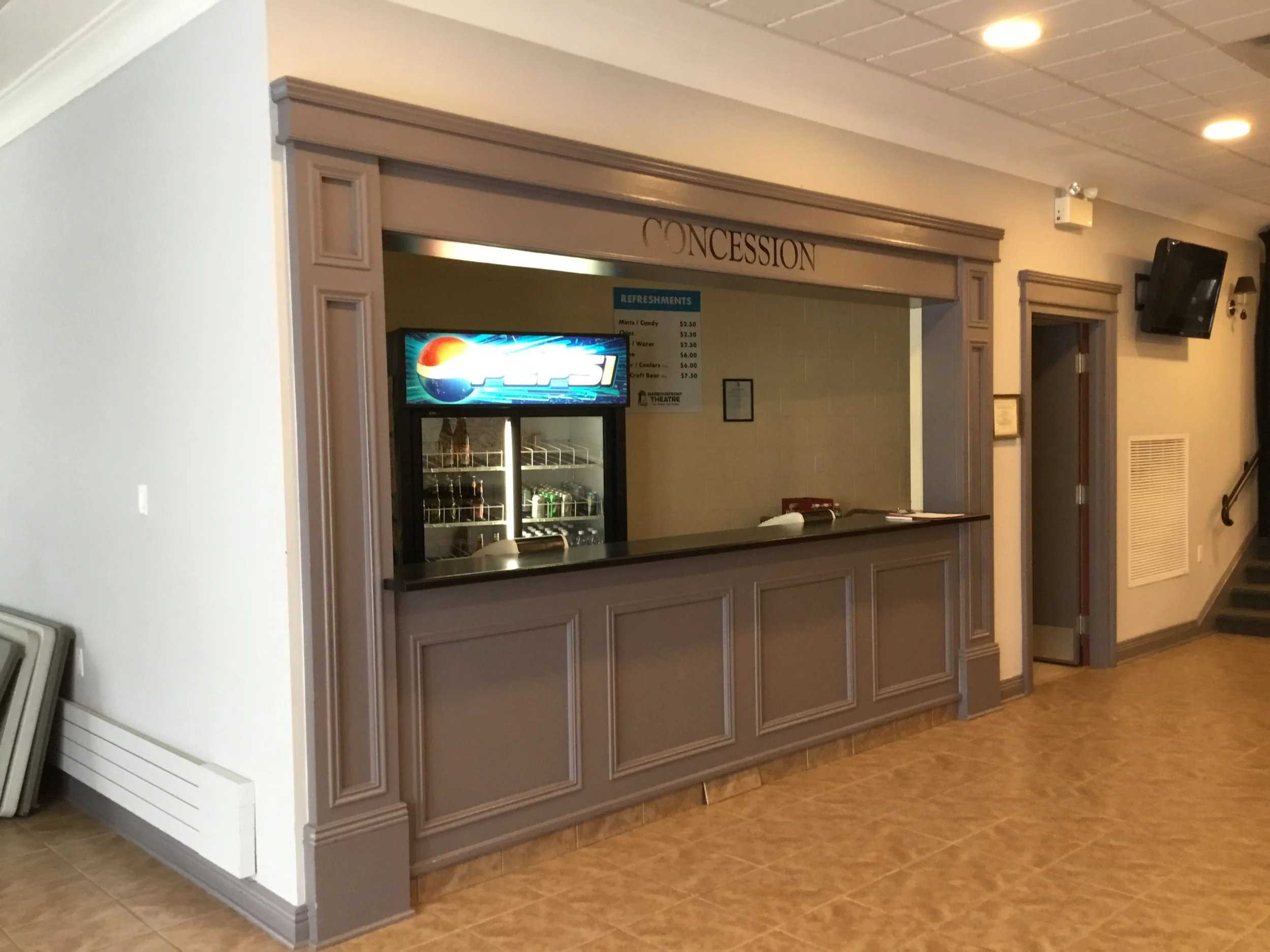 APRES- HARBOURFRONT THEATRE / CUSTOM CURVED INCLUSIVE TICKET COUNTER DESIGN / MODERN BRANDING NEW LIGHTING & COLOR PALETTE